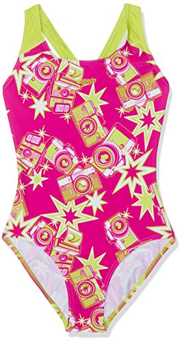Speedo All Over Splash Back, Costume da Bagno Bambina, Rosa (Electricpink/Limepunch/White), 7-8 Anni