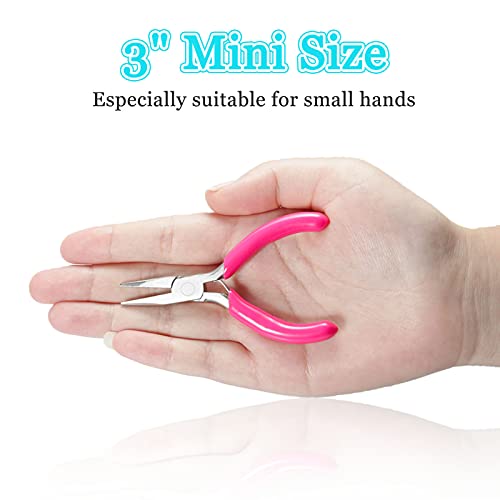 Speedowox Mini pinze a becco lungo da 7,6 cm con manico in PVC rosa, pinze per gioielli per la creazione di gioielli, avvolgimento di filo fai da te e hobby