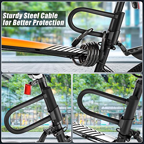 UTILIZZO CONVENIENTE: questo lucchetto per bici viene fornito con un cavo in acciaio a doppia estremità da 4 piedi rivestito con rivestimento in PVC e l'intero diametro del cavo è di 0,48 pollici. Fornirà alla tua bici una maggiore flessibilità di bloccaggio e una migliore protezione.