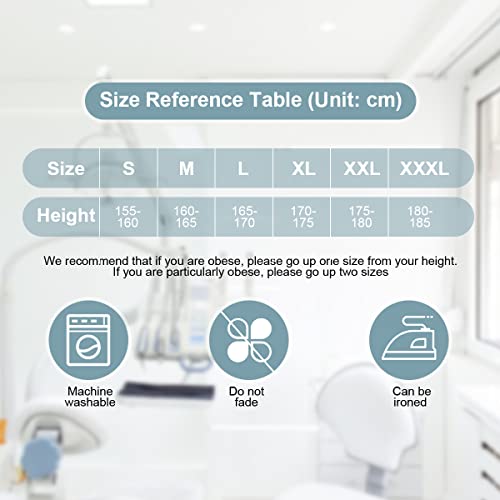 Cinque misure tra cui scegliere: il camice medico è disponibile in 5 diverse misure, una tabella di riferimento delle taglie è inclusa nella foto del prodotto e è possibile utilizzare capi simili per confrontare i vestiti mostrati nell'immagine. Se è tra 2 taglie, si consiglia di scegliere una taglia più grande per una migliore libertà di movimento. Si prega di consentire un piccolo errore di misura a causa della misurazione manuale.