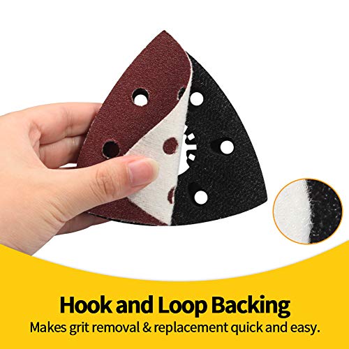 SPEEDWOX 50 cuscinetti abrasivi triangolari con gancio e anello a grana 120 oscillanti per levigatura 90 mm, 6 fori, misura 3-1/2 pollici oscillante Multi Tool