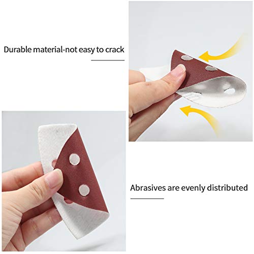 SPEEDWOX 50 cuscinetti abrasivi triangolari con gancio e anello a grana 400 oscillanti, 90 mm, 6 fori, misura 3-1/2 pollici e multi strumento