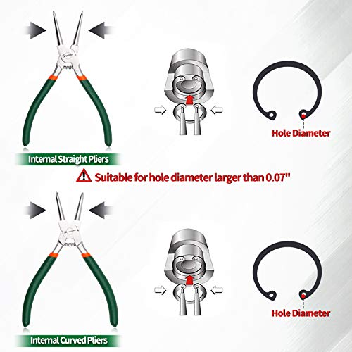 SPEEDWOX - Set di 2 pinze ad anello a scatto da 17,8 cm, con pinze per anelli di fissaggio a clip di precisione, resistenti e curve, per rimuovere gli anelli