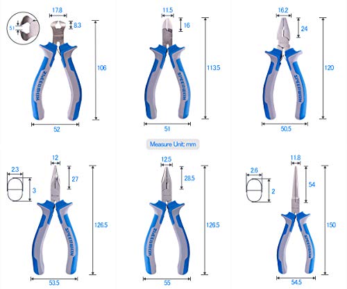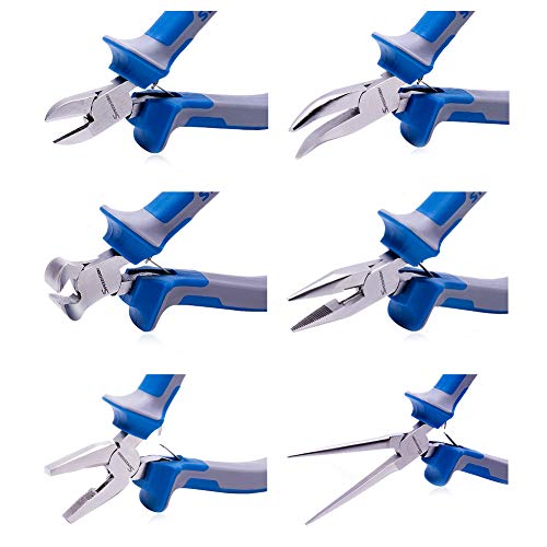 Dimensioni compatte: pinza da 10,2 cm, pinza diagonale da 10,2 cm, pinza da 15,2 cm, pinza a becco piegato da 15,2 cm, pinza a becco lungo 15,2 cm e un apri-anello per saltare.