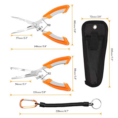Applicazione: utilizzato per rimuovere l'amo in modo sicuro e preciso, ottimo anche per intrecciare o tagliare lenza. Viene fornito con 2 cordini a spirale e una guaina in nylon nero che può essere attaccata alla cintura, non facile da perdere e molto portatile.