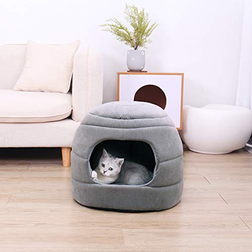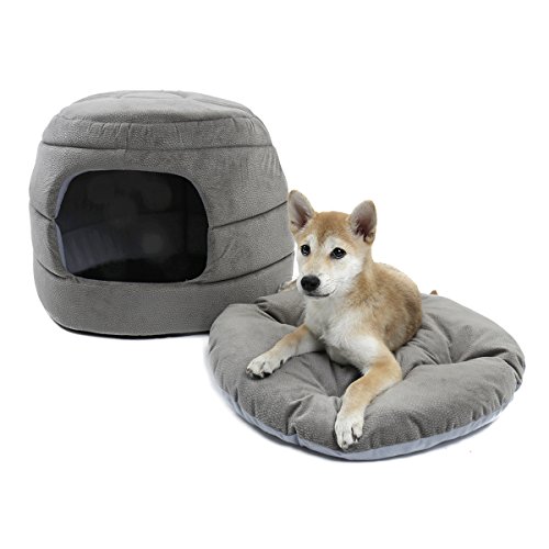 Speedy Pet 2 in 1 cane casa letto e cane antiscivolo divano letto con cuscino staccabile lavabile Dog Igloo letto morbido cestino cave letto per cani e gatti nido grigio