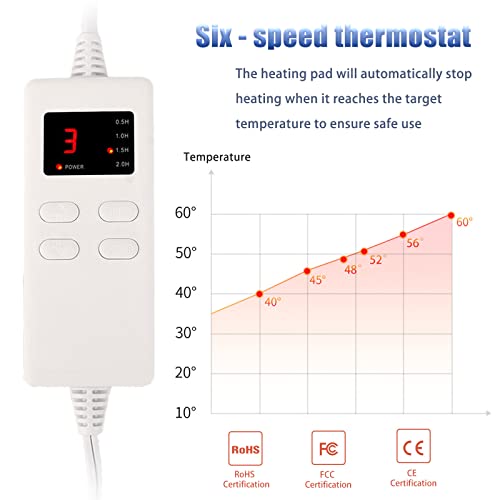 Spegnimento Automatico Del Termoforo, Termoforo Elettrico 40 * 76 cm con 6 Impostazioni di Calore, Impostazioni del Timer, Termoforo Elettrico Ultra Morbido per Schiena, Collo, Spalle, Ginocchia