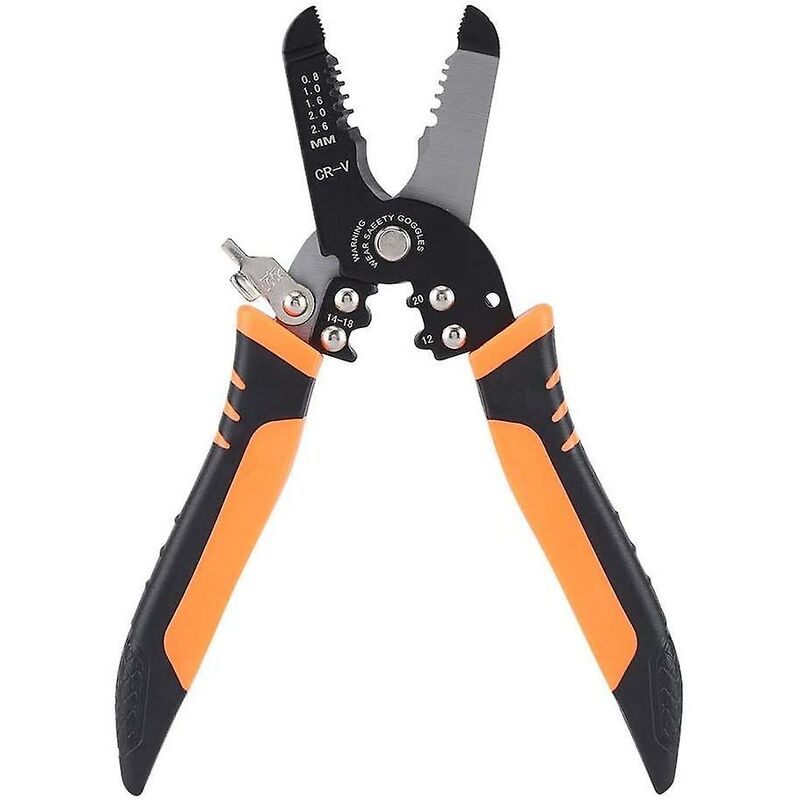 Con una lunghezza totale di 175 mm e un'apertura allargata di 32 mm, lo spelafili è semplice per bloccare l'oggetto e facile da usare. È una pinza multifunzionale che può essere utilizzata per spelare, crimpare, bloccare, tagliare e ti aiuta a far passare perfettamente il filo o il cavo.La fascetta è realizzata in lega di acciaio al manganese di alta qualità, è molto resistente, durevole e svolge facilmente il lavoro.Manico dal design ergonomico per comfort e precisione, antiscivolo, facile da impugnare con poco sforzo. Questo spelafili può essere utilizzato in scatole collettive di cavi, cavi per computer, cavi per elettrodomestici, circuiti automobilistici, cavi radio, cavi per hobby e simili."