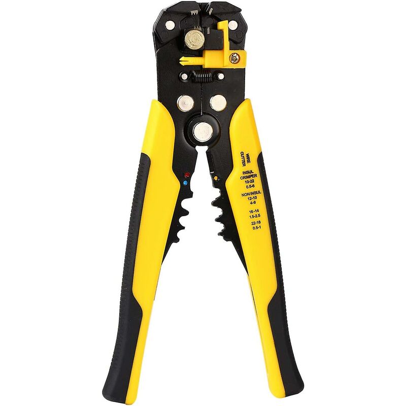 Automatico e multifunzione Non c'è bisogno di premere il filo per il foro, tutti i tipi di fili possono essere fissati in base alla lunghezza richiesta regolando la manopola, che non danneggerà l'anima. Crimpatura: È possibile crimpare terminali isolanti da 10 a 24 AWG (da 0,5 a 6,0 mm2) Spelafili ad alta precisione: il cursore in plastica consente di regolare la lunghezza di spelatura, quando non è necessario spingerlo in un'altra direzione;