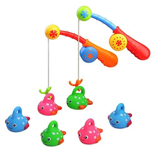 SPENCER Giocattoli da bagno per bambini con Spotted Fish e Canna da pesca Vasca da bagno Fun Toys Gioco di pesca piccoli Set di 2 (Colore Casuale)