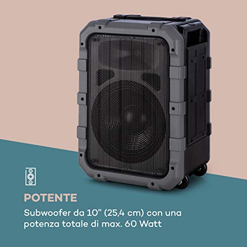 Auna Spencer Speaker PA Portatile - 60 Watt, Impermeabile secondo Standard IPX4, Woofer 10", Tweeter da 2,5", Bluetooth, USB, Batteria, AUX-IN, 2 Ingressi Microfono/Chitarra, Nero/Grigio