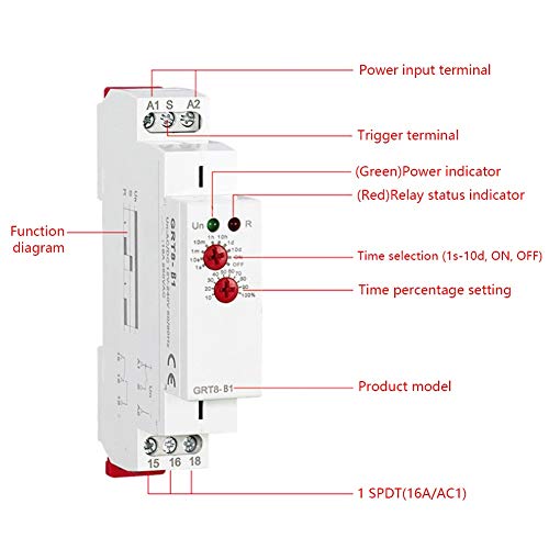 Spento Ritardo Relè, GRT8-B1 Mini spegnimento 220V Delay Time Timer Relay Guida DIN Tipo AC