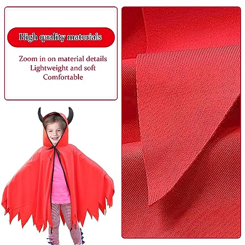 Costume di Halloween per bambini: riceverete un impressionante mantello da diavolo rosso per Halloween in una confezione con un mantello rosso con cappuccio con corna da diavolo, il cui design neutro è adatto a tutti i ragazzi e ragazze, per vestirsi da carino e spaventoso