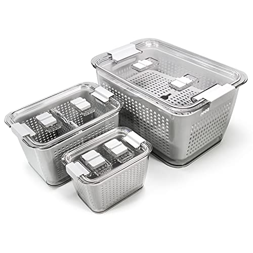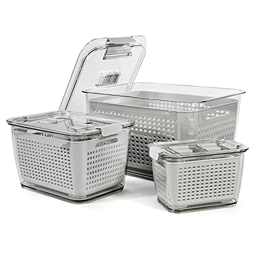 Spesh Set di 3 contenitori salvafreschezza per frigorifero, set da 0,5 l + 1,7 l + 4,5 l), in plastica, con coperchio e scolapiatti (grigio, set da 3)
