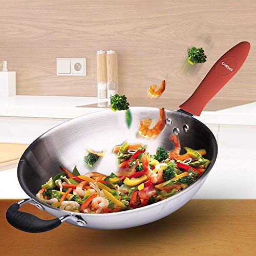 Spespo Bistecchiera raschietto + durevole pan Scrapers + silicone Hot Handle Holder for ghisa Skillets, padelle e Bistecchiere, confezione da 6 (rosso, nero)