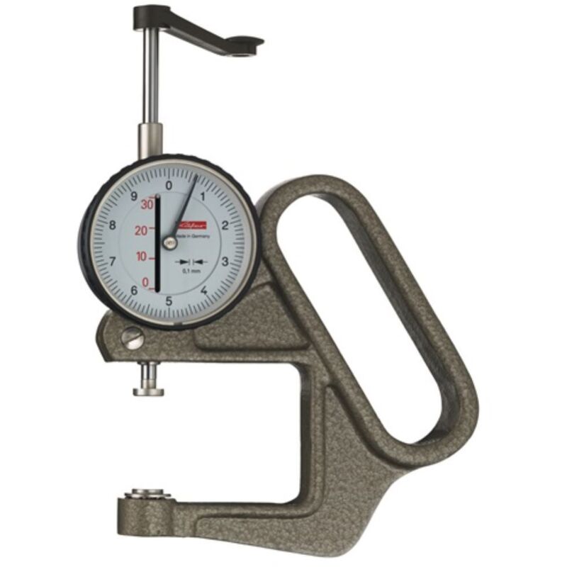 Zum Messen der Dicke von Leder, Filz, Gummi, Glas, Blech, Sperrholz und Kunststoffen aller Art · durch Drehen des gerändelten Außenrings kann die Strichskala der Messuhr auf Null eingestellt werden · Bügeltiefe 50 mm, Außenring-Ø 58 mm Weitere technische Eigenschaften: · Zertifikat: mit Werkskalibrierung · Modell: K 50/3 E · Bügeltiefe: 50mm · prüfpflichtig: ja