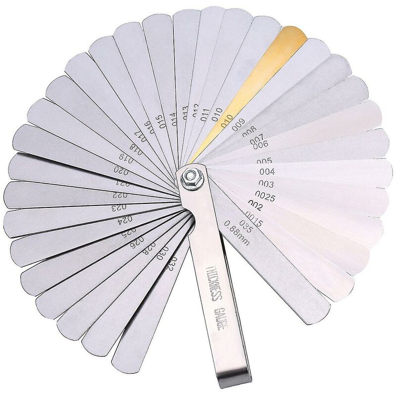 Informazioni sul prodotto 1. MISURAZIONE DI PRECISIONE: spessimetro a 32 lame: 32 lame in acciaio temprato e temperato, misura da 0,0015 pollici (0,038 mm) a 0,035 pollici (0,889 mm), questo è uno strumento di misurazione della distanza delle corde distanziatore comune per chitarra, albero principale cromato per una facile pulizia e un aspetto professionale 2. Comodo da trasportare: lamiera d'acciaio mobile che può essere ruotata nella protezione in acciaio senza occupare spazio. Ci sono viti mobili sullo spessimetro per rimuovere l'acciaio dallo spessimetro. Allo stesso tempo, ha un portachiavi intrecciato per un facile trasporto. e l'accesso. 3. PRODOTTI IN ACCIAIO INOSSIDABILE: lo spessimetro è realizzato in acciaio inossidabile ed è durevole. Il prodotto è rivestito con olio lubrificante per prevenire la corrosione della sonda e prolungarne la durata. 4. SEGNO DI SEGNO: ogni parte in acciaio inossidabile dello spessimetro ha una scala contrassegnata per una facile misurazione. Le
