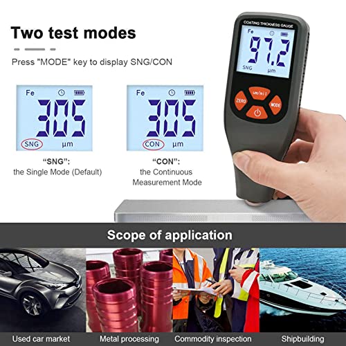 【Supporta una varietà di materiali】 Lo spessimetro viene utilizzato per misurare lo spessore della lamiera placcata e rivestita su metallo, ad es. vernice / smalto / cromo su acciaio, vernice e rivestimento anodizzato su alluminio / rame.