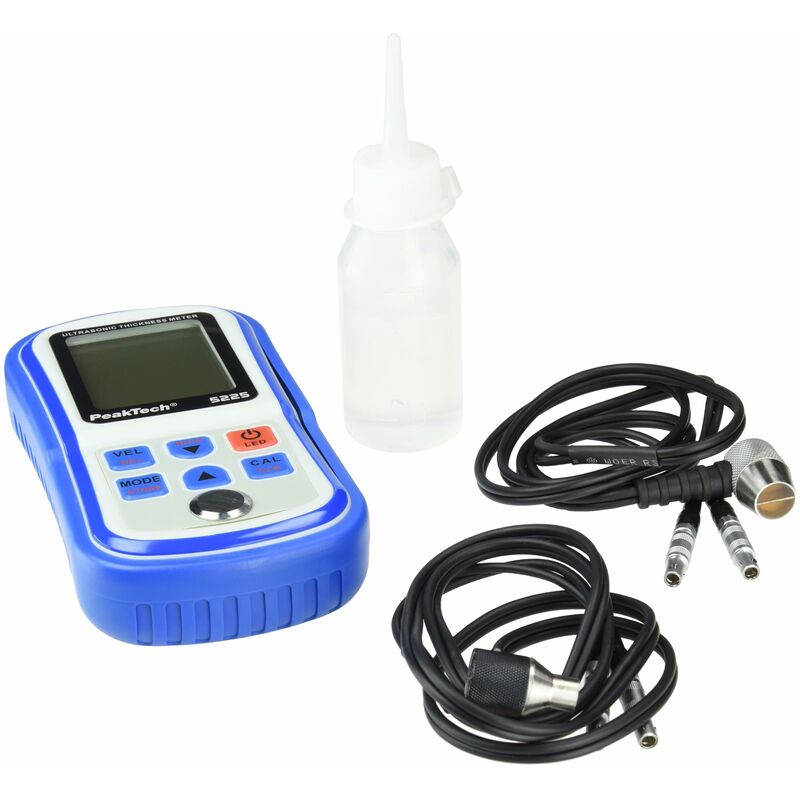 Descrizione Questo nuovo materiale sviluppato-Misuratore di rafforzare il microprocessore controllato e funziona secondo il principio Echo/Echo ad ultrasuoni. Quindi può misurare il dispositivo sulla base della velocità del suono rafforzare il materiale della maggior parte delle onde sonore di materiali, quali metallo, vetro, plastica, ceramica e molto altro ancora. Per la massima precisione, il dispositivo, oltre all' elevata risoluzione di 0.1 mm offre anche una di tubi tramite una piastra metallica in cassa 4 mm. Il dispositivo sono disponibili due sensori per diversi spessori per le misurazioni, che da 1 mm fino a 300 mm con 5 MHz frequenza del suono. Per una migliore protezione si trova l' accessorio ricca in una valigetta di alluminio. Pertanto è il dispositivo ideale per uso quotidiano nella valutazione di rafforzare in materiale da costruzione navale, il metallo e tubo o della produzione Ware adatto. + + + specifiche: + + + Campo di misura: 1.00 mm... 300.0 mm + + + base
