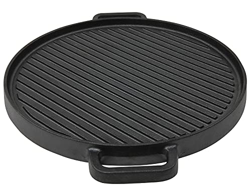 Spetebo - Piastra in ghisa 30 cm, padella in ghisa rotonda con manico, bistecchiera per barbecue, per arrostire e servire il cibo, adatta per fornelli a induzione