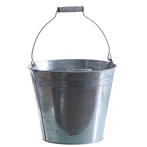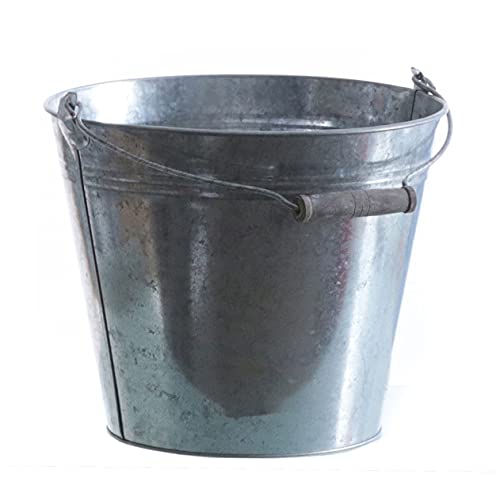 Spetebo Secchio di zinco con manico in legno, 7 litri, secchio per acqua, in latta, fioriera
