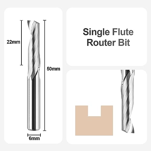 SpeTool Fresa 6mm per Alluminio Fresa a Spirale 22mm Lunghezza di Taglio Fresa CNC Singolo Flauto Fresa in Carburo di Tungsteno Solido Frese Monotagliente Fresa per Legno per Alluminio Ottone