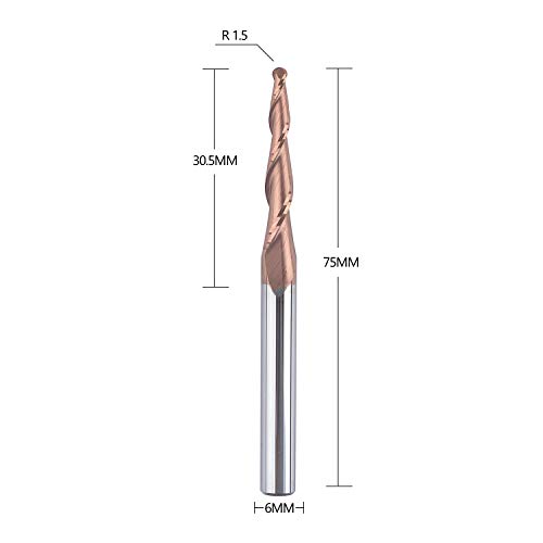 Spetool Fresa conica Raggio della sfera 1,5 mm Gambo 6 mm 2 taglienti Frese in metallo duro CNC per intaglio del legno Rivestimento H-Si