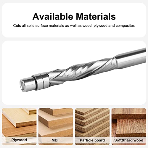 【Affilatura】La fresa per rifilare per rifilare è realizzata in carburo di tungsteno di alta qualità che soddisfa rigidi standard di qualità industriale. La fresa a copiare per legno è robusta e durevole, garantendo che non si ottundi o si rompa facilmente. Ha un design a doppia flûte con compressione verso l'alto e verso il basso, che offre un'eccellente nitidezza di taglio, una forte capacità di rimozione delle schegge e un taglio pulito.