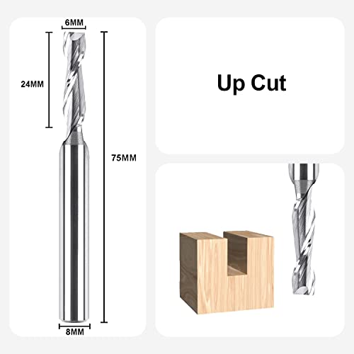 SpeTool Frese per Legno Gambo 8mm Fresa Elicoidale Diametro di Taglio 6mm HRC55 Frese a Spirale Lunghezza di Taglio 24mm UpCut Fresa per Canali Scanalatura Fresa in Metallo Duro CNC per Legno
