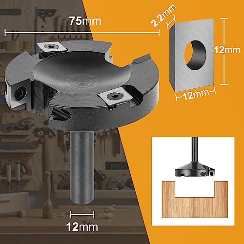 【Efficiente】La fresa per spianare SpeTool ha un diametro dell'asta di 12 mm e un grande diametro di taglio di 75 mm. La frese per legno offre un'elevata efficienza di taglio, una rimozione efficace dei materiali e un efficiente livellamento di superfici ampie.