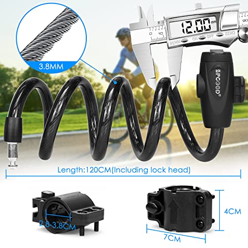 【ELEVATA SICUREZZA】SPGOOD il lucchetto per bicicletta è costituito da un cavo in acciaio spesso 12 mm, che ha una forte resistenza al taglio e alla corrosione, e il nucleo del blocco in lega di zinco rinforzato e il tappo resistente con guscio in ABS rendono difficile l'apertura per gli aggressori.