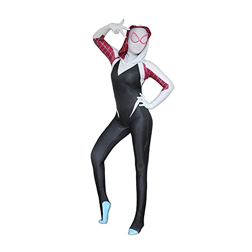 Spider-Gwen Costume Bodysuit Children's Spiderman Tutesuit 3D Stampato Halloween Cosplay Suit X'Mas Gioco Party Outfit Stage Donne Teach Fattend Play Set,Black-Adult 3XL (180~185)