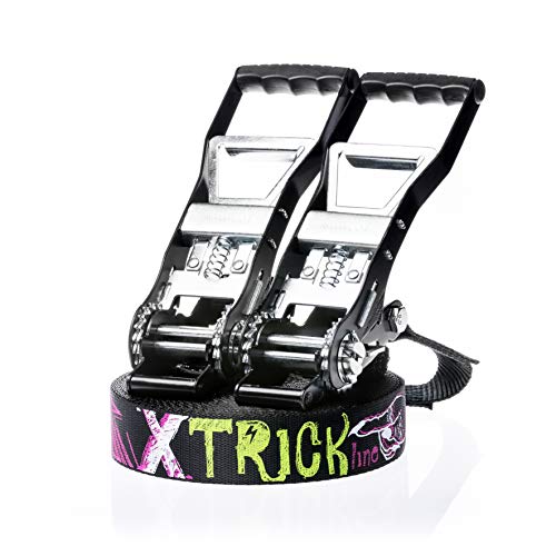 SPIDER SLACKLINE TKS04 - Kit Slackline Trick Line per Salti, Camminata e Freestyle - Contiene un Cricchetto Hummer con Fettuccia 40 cm, un Cricchetto Hummer con Soft Release, una Linea di 25 Metri, Due Proteggi Alberto, una Sling 1T 3 m, una Sling 1T 2 m, Due Grilli 1,5T 12 mm e una Sling Bag - Per gli Slackliners Esperti - Set Completo Lunghezza 30m