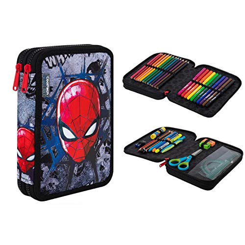 Spiderman Black Astuccio Grande Doppia Zip Con Accessori - 38pezzi