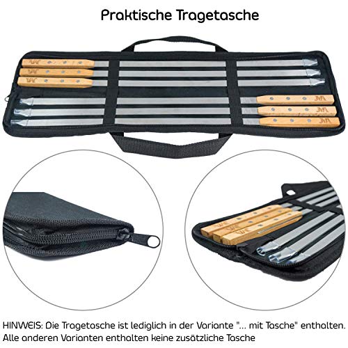 JMA® - 6 Spiedini per barbecue in acciaio inox (AISI 430) - shish kebab extra lunghi 53 cm - manico in legno di faggio - inclusa pratica borsa per il trasporto - alta qualità