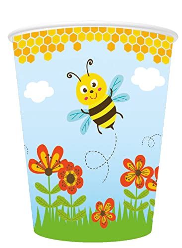 Spielum Set di 44 pezzi per feste con api impertinenti - piatti bicchieri tovaglioli cannucce per 8 bambini