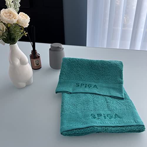 Spiga Set Asciugamano con Ospite in spugna Tinta Unita 100% Cotone, 2 asciugamani da bagno, 50x100 cm e ospite 40x60 cm (verde acqua)