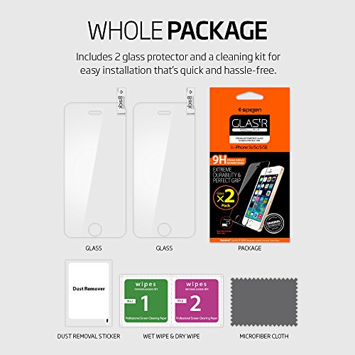 Spigen, 2Pezzi, Vetro Temperato iPhone SE (2016) / 5S / 5, Glas.tR, 9H Durezza, Custodia Compatibile, Alta Reattività, Niente Bolle, Anti-impronta, Pellicola iPhone SE (2016) / 5S / 5
