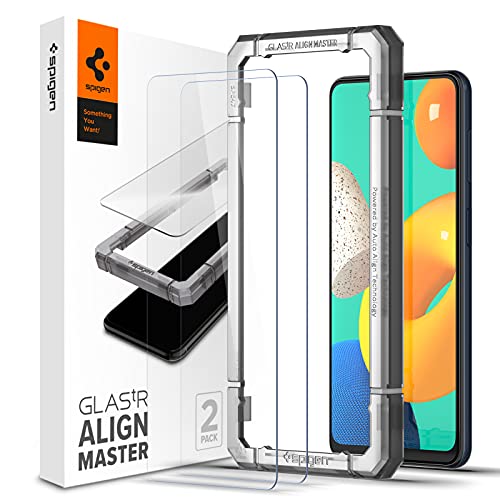Spigen AlignMaster Vetro Temperato compatibile con Samsung Galaxy M32, 2 Pezzi, Installazione Semplice con Cornice di Allineamento, Custodia Compatibile, 9H Protezione Schermo