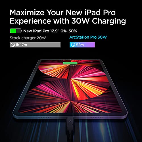 Velocità di ricarica ultra veloce tramite USB-C Power Delivery 3.0: 30 watt di uscita sono sufficienti per caricare il tuo cellulare, tablet e laptop alla massima velocità di ricarica possibile. Carica il tuo cellulare fino al 50% in 30 minuti! (Basato sui nostri test di laboratorio con l'iPhone serie 12) (È necessario un cavo USB C a USB C separato)