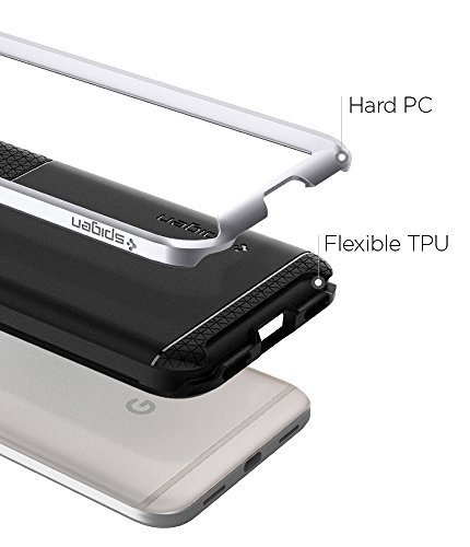 Spigen Cover Goolge Pixel, [Stile-Elegante-Bumper] Neo Hybrid [Satin Silver] Dual Layer Coperchio di Protezione Custodia Cover per Google Pixel - F14CS21056