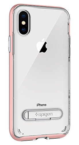 Spigen Cover iPhone X, [Crystal Hybrid] Custodia iPhone X con Marchio Water-Mark TPU Libero e Supporto Magnetico in Metallo per Apple iPhone X (2017) - Rose Gold - 057CS22146