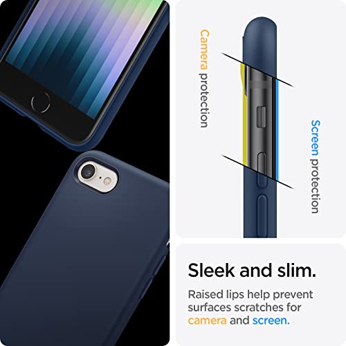 Spigen Cover Silicone Fit Compatibile con iPhone SE 2022 5G, iPhone SE 2020, iPhone 8 e iPhone 7 - Blu notte