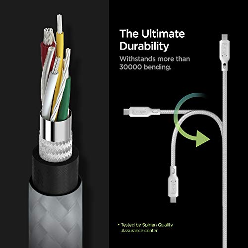 Contenuto della confezione: Spigen DuraSync Cavo intrecciato in cotone extra durabile da USB-C a USB-C 2.0 e garanzia Spigen 24 mesi