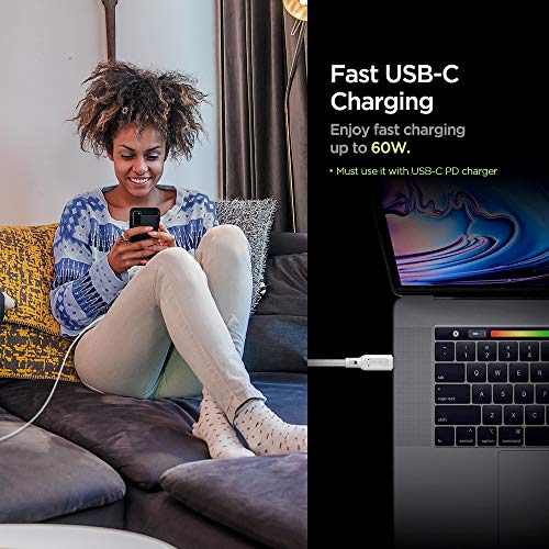 Spigen DuraSync Cavo USB C a USB C 2.0, 60W 480Mbps 1.5m Duraturo trasferimento dati intrecciato in Cotone e Caricabatterie, SOLO USB-C Compatibile, Adattatore USB C non incluso