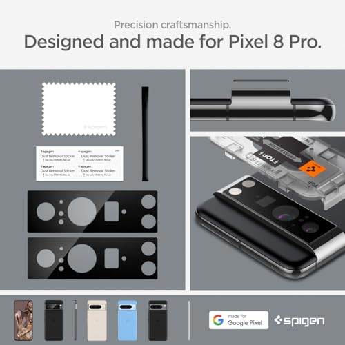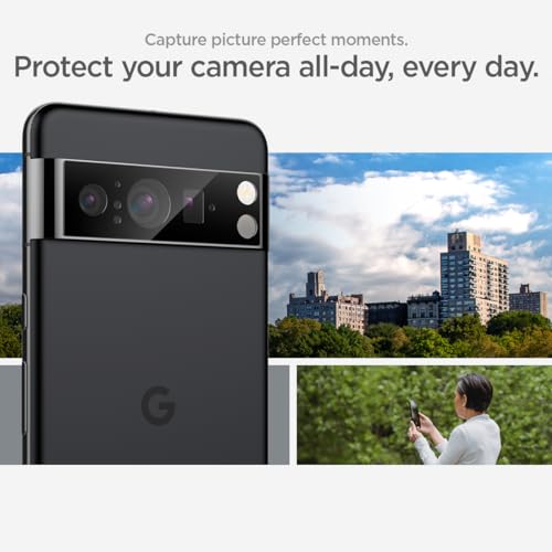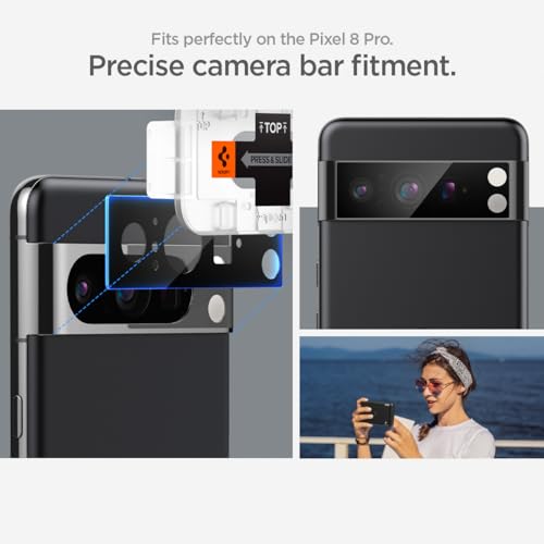 Spigen Glas.tR EZ Fit Optik Protezione Fotocamera compatibile con Google Pixel 8 Pro, 2 Pezzi, Néro, Installazione Facile, Resistente ai Graffi, Durezza 9H Pellicola prottetiva