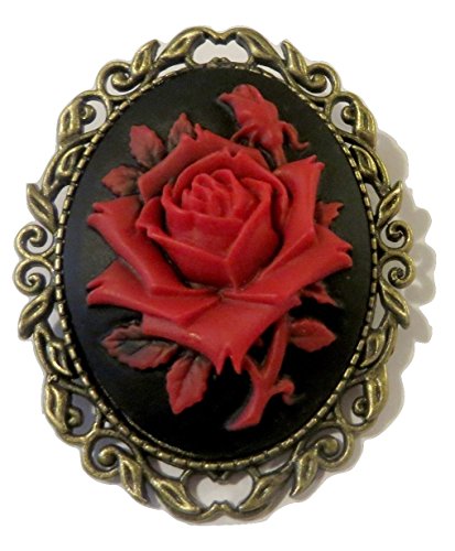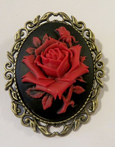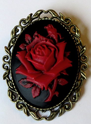 Spilla 5x4cm cammeo Rosa Rossa 4x3cm Amore Gothic Retro Victorian Red Rose Brooch Larp