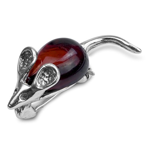 Spilla in ambra rosso ciliegia e argento Sterling, a forma di topo