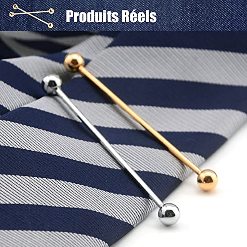 2Pz Spilla da Collo Uomo, Collar Bar Pins Camicia Cravatta Fermacravatta Clip Chiusura Bavero Spilla Uomo Tono Oro Ottone Palla