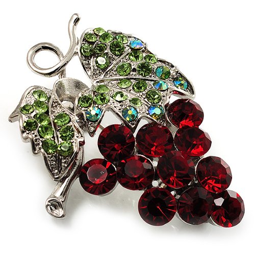 Spilla in cristallo Swarovski a forma di grappoli d'uva (rosso bordeaux e verde chiaro, argento)